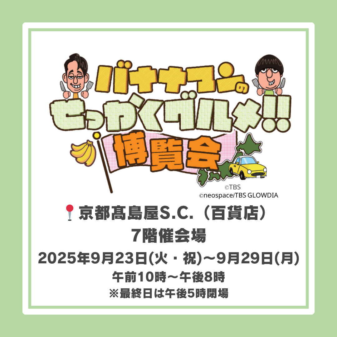 『バナナマンのせっかくグルメ!! 博覧会』横浜髙島屋に出品します!
